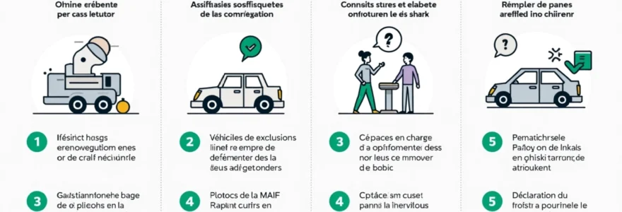 Ces exclusions soulignent l’importance d’un entretien régulier du véhicule et d’une utilisation responsable. Il est recommandé de lire attentivement les conditions générales de son contrat pour identifier toutes les situations non couvertes.
